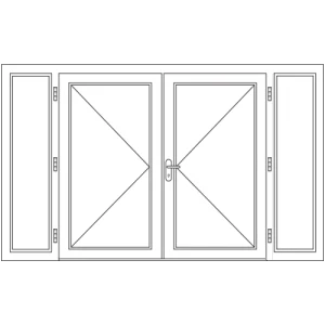 De breedte van de dubbele deuren vanaf hart middenstijl tot hart middenstijl is standaard 1800 mm breed en is op aanvraag smaller en breder te bestellen. De overige breedte wordt evenredig verdeeld over de zijlichten.