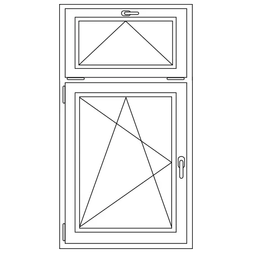 Dit type raam ziet u vaak bij wat oudere klassieke huizen. Een typische klassieke bouwstijl waarbij ramen (met een verdiept profiel) werden gebruikt zoals in deze vorm. Deze zijn nu ook beschikbaar als kunststof kozijn. Het onderste gedeelte is een draai / kiep raam en daarboven een val raam. De hoogte van dit bovenlicht is standaard 700 mm. Dit houdt in dat 700 mm de afstand is tussen bovenkant kozijn en hart middenstijl. De minimale hoogte is 450 mm en de maximale hoogte is 700 mm.