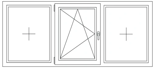Dit kunststof kozijn wordt veel gebruikt op de 1e etage dan wel op dakkapellen. Dit kozijn kan namelijk tot een breedte van 3600 mm en bestaat uit 3 delen. Twee delen aan de zijkant met vaste ramen en 1 gedeelte draai / kiep in het midden.
